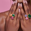The Maya gem statement rings. Gorgeous 22k Matte gold plated rings.various colours of gems set in the gold setting.